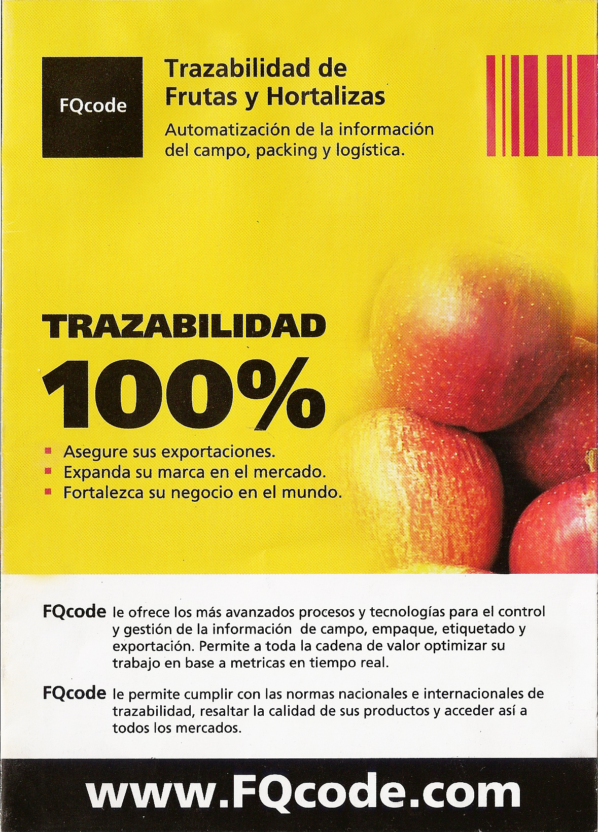 Estuvimos a cargo desde sus inicios de la campaña de difusión y posicionamiento estratégico en medios digitales y tradicionales de FQcode, Soluciones Integrales de trazabilidad para frutas y hortalizas.