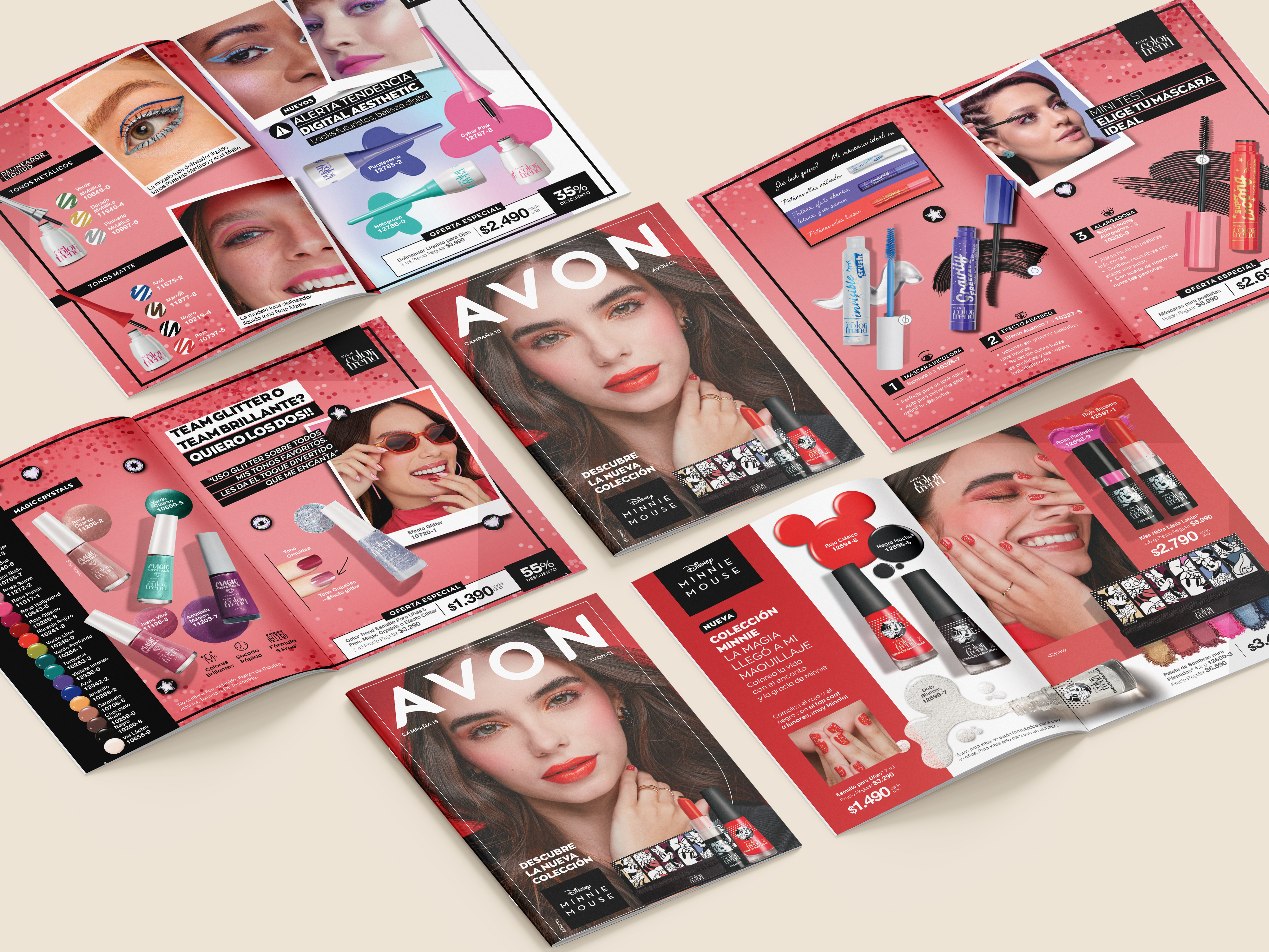 Dirección de arte para producciones fotográficas de lanzamientos y eventos de mercado para marca líder en venta directa de productos de cosmética, fragancias y cuidado personal. Diseño editorial de folleto promocional para el mercado chileno.